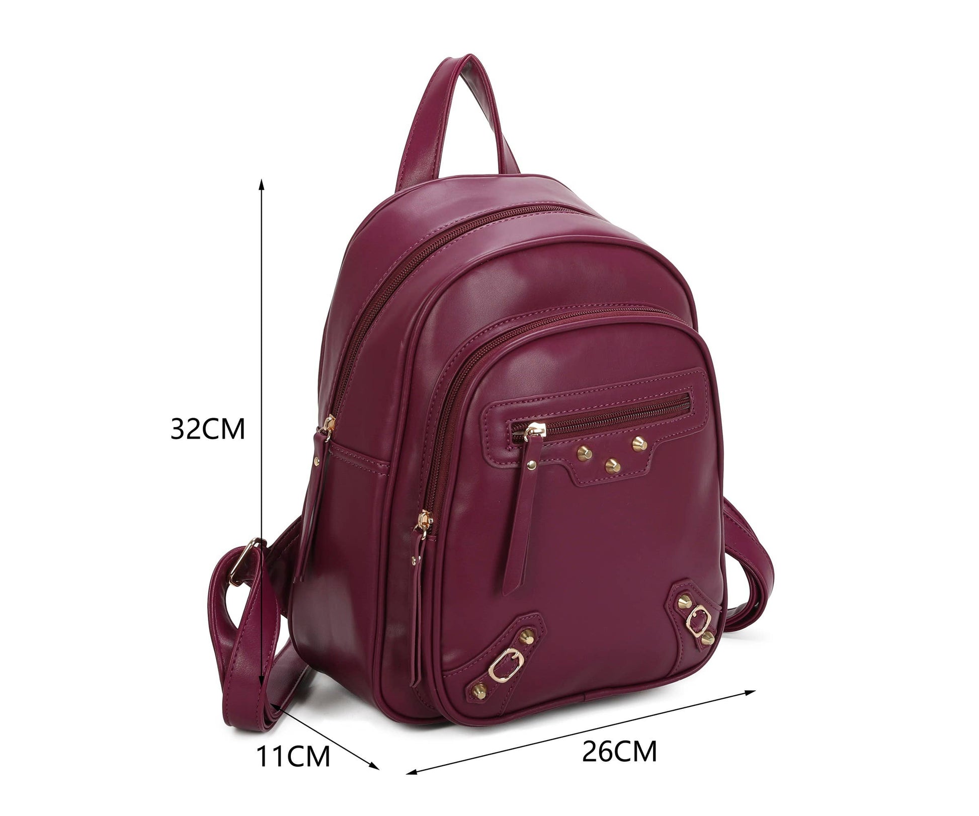 - Soft Pu Medium Size Light Weight Studs Details Backpack Bag